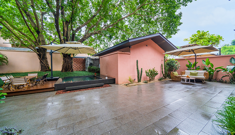 踏进酒店就能看到粉色的房子、层叠的拱门、广阔的草坪以及成片的椰林; 酒店是摩洛哥印象为灵感的设计风格可以说,在这里拍照会非常容易出片; 拍照宝藏地-户外泳池在泳池旁还配备沙滩椅是休闲发呆的好去处,还可以 趁机体验池畔下午茶哦。