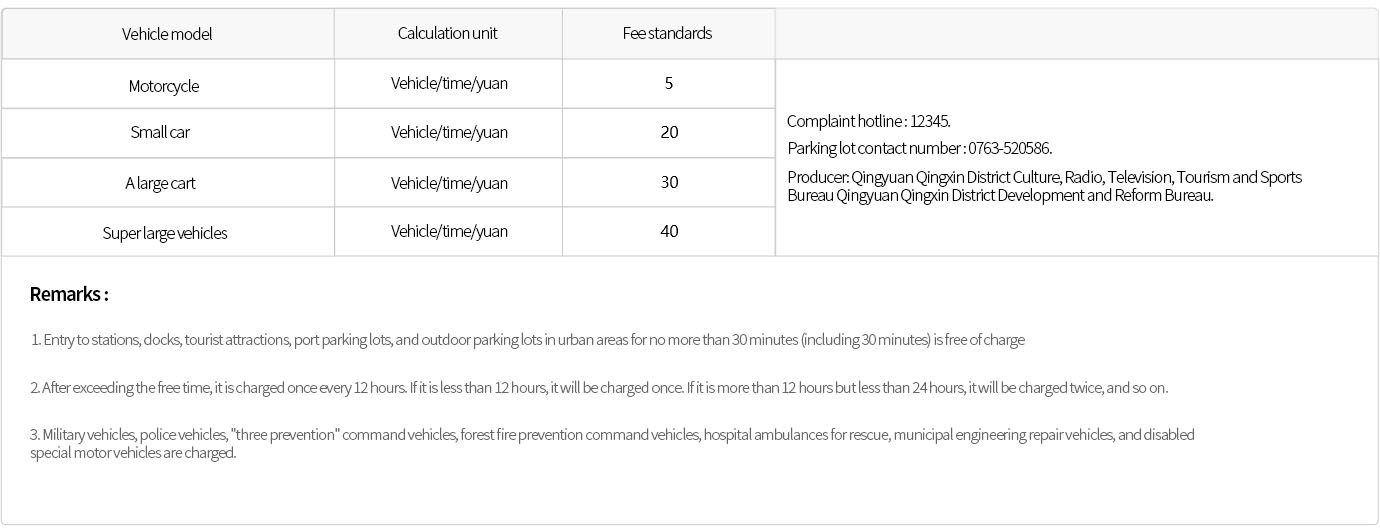 The parking fee standard for VLOG Hotel in Gulongxia and Hezhong Hot Springs, Qingxin District, Qingyuan City.