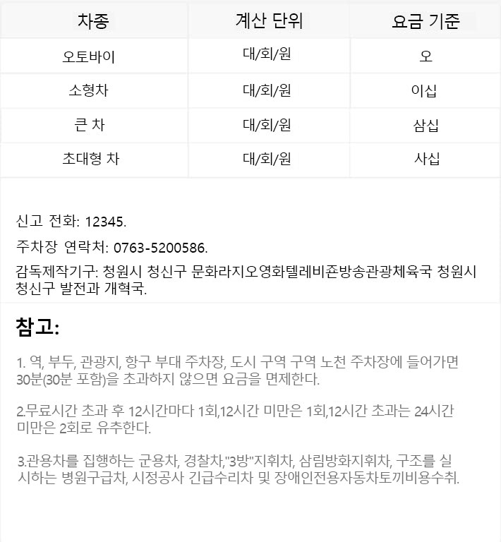 청원시 청신구 구룡협·하중온천 VLOG 호텔 주차장 요금 기준.