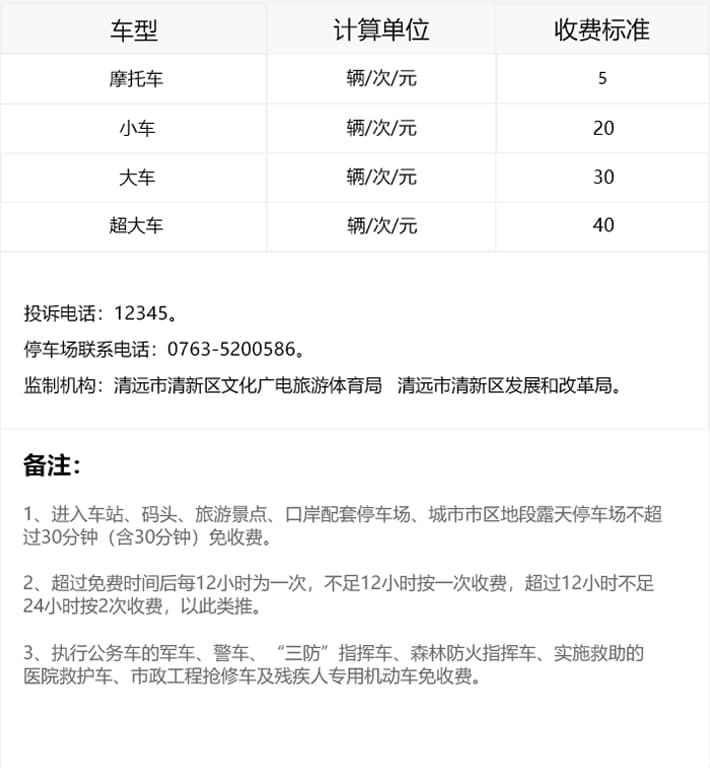 清远市清新区古龙峡•河中温泉VLOG酒店停车场收费标准。