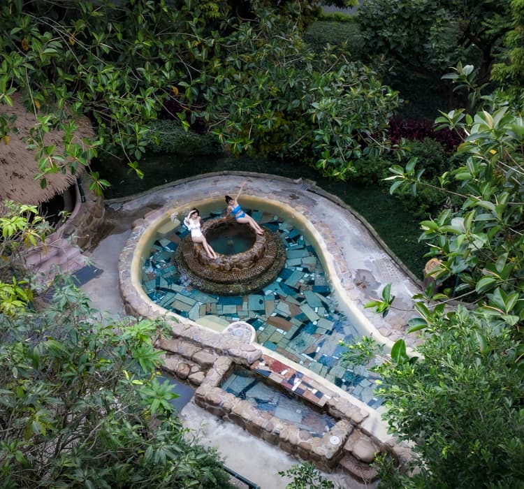3. 请选择适合自己的温度的温泉池浸泡,一般从温到热,每次浸泡5-10分钟即上岸休息,饮水后再浸泡。
