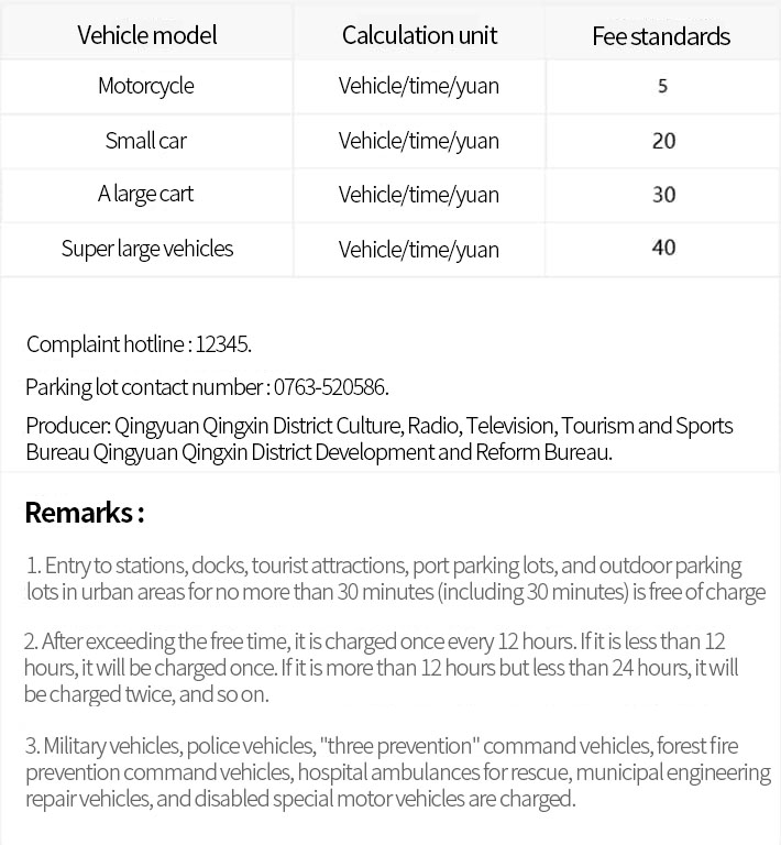 The parking fee standard for VLOG Hotel in Gulongxia and Hezhong Hot Springs, Qingxin District, Qingyuan City.